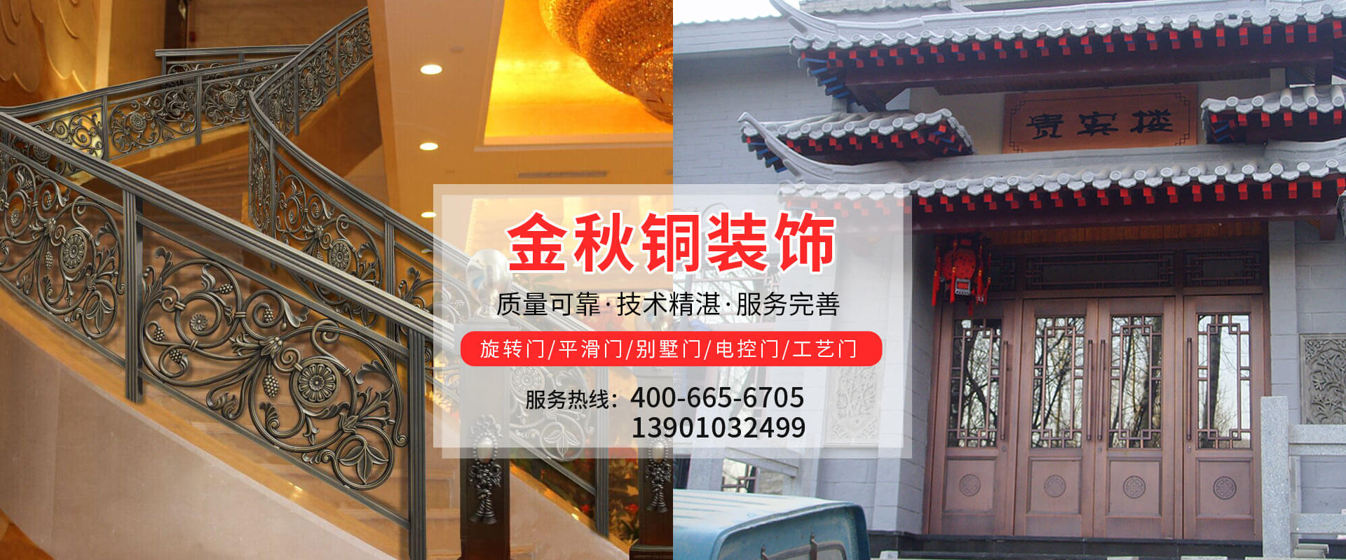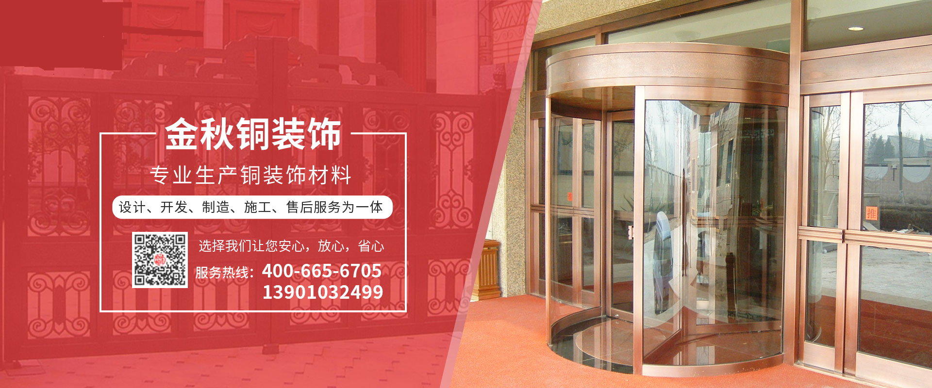 北京金秋銅裝飾材料有限公司是專(zhuān)業(yè)生產(chǎn)銅裝飾材料及設(shè)計(jì)、開(kāi)發(fā)、制造、施工、售后服務(wù)為一體的大型綜合企業(yè)??沙薪咏ㄖ~裝飾工程及五星級(jí)酒店、別墅、博物館、樓樘管所等高檔銅裝飾項(xiàng)目;生產(chǎn)各種規(guī)格的旋轉(zhuǎn)門(mén)、平滑門(mén)、別墅門(mén)、電控門(mén)、工藝門(mén)、旋轉(zhuǎn)護(hù)欄、屋頂銅飾防水瓦、浮雕壁畫(huà)......